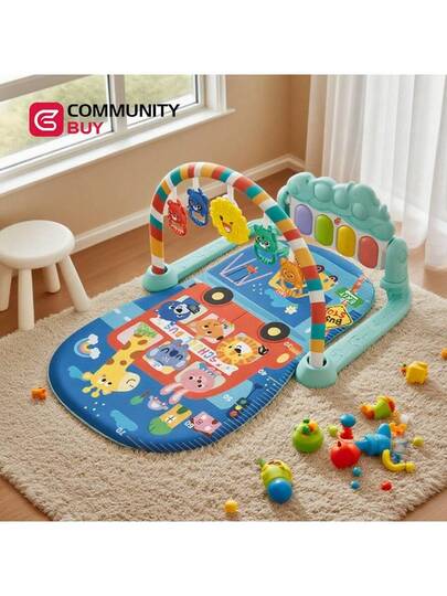 Jueguete para bebés: columpio fitness con piano musical de pedal, alfombra de juegos, piano de pedal para bebés, juguete para neonatos y niños pequeños de hasta 36 meses - Azul - Añade 1