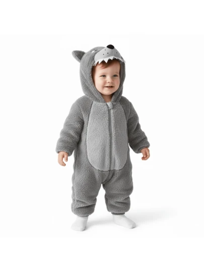 Costume Winter Warm Long Sleeve Hooded Romper Cute Halloween Plush Jumpsuit - Gris - Añade 6