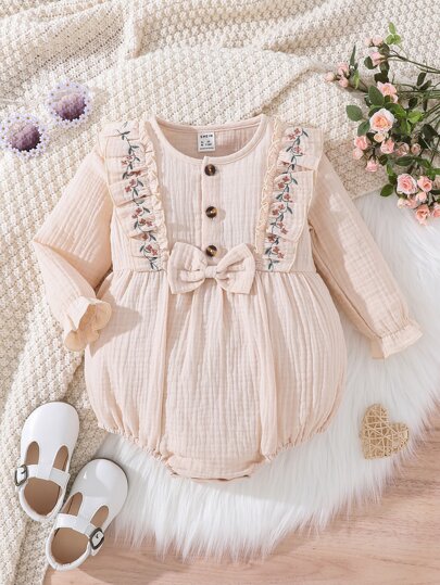 Bebé Body con bordado floral ribete con fruncido con lazo delantero - Albaricoque - Añade 4