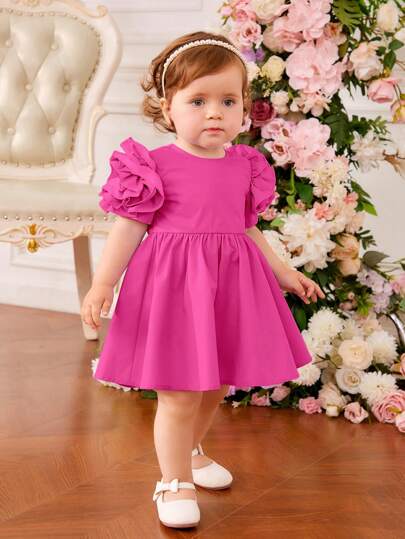 SHEIN Vestido de mangas cortas con volantes de estilo princesa dulce y lindo para bebé niña - Rosa - Añade 1