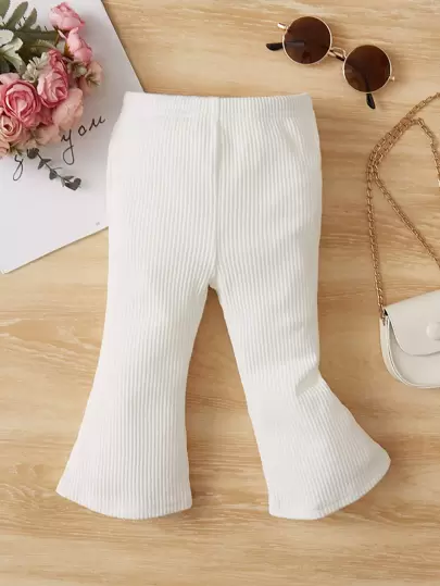 SHEIN Pantalones de pierna acampanada de unicolor con cintura elástica, adecuados para niñas pequeñas en primavera y otoño - Blanco - Añade 1