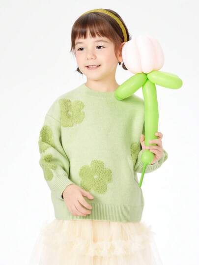 Balabala Niña preadolescente Bottom de punto de cuello redondo con estampado floral - Verde - Añade 6