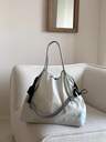 1 pieza Nuevo bolso de mano grande de cuero con patrón bordado, versátil y plegable, con correa de hombro ajustable para uso diario y compras