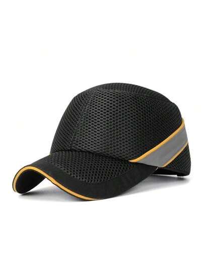 Casco de  de tela de red de alta visibilidad anti-colisión, gorra de trabajo, estilo de gorra de béisbol, protección para la cabeza, reparación - Negro - Añade 1