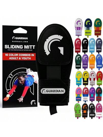 Guardian Baseball Manopla deslizante – Tallas para jóvenes y adultos – Protector deslizante de softball – Protector de mano de béisbol – Correa de compresión elástica - Negro - - Añade 8