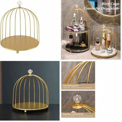 Asixxsix Jaula de pjaros Organizador de Maquillaje, de Hierro de Oro cosmticos Estante de exhibicin de Ahorro de Espacio de la Magdalena de pie Esencia locin Estante para el bao (una - una sola capa - Añade 2