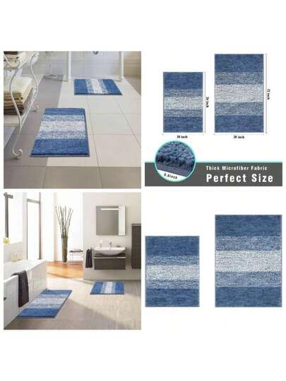 - Juego de 2 alfombras de bao suaves, antideslizantes, lavables, de microfibra, absorbentes, a rayas, para baera, bao y ducha 45, 60, 6x 50, 8x 80, 2 color azul - 18''x26''+20''x32'' + Azul / Patchwork - Añade 1