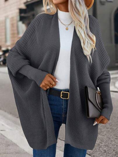 SHEIN Essnce Cárdigan informal con mangas tipo murciélago - Gris Oscuro - Añade 1
