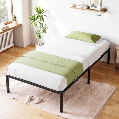 Base De Cama Queen De Metal 14 Pulgadas Con Gran Espacio De Almacenaje, Estructura De Plataforma Resistente Sin Resortes, Antideslizante y Silenciosa, Fácil Montaje - Negro - Añade 8