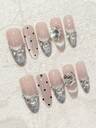 ¡Esencial para niñas dulces! Juego de 10 piezas de puntas de uñas de manicura francesa pintadas a mano con ojos de gato plateados, lunares negros y acentos de rhinestones. Lindos, elegantes, adecuados para uso diario, citas y reuniones con amigos. Pegatinas de arte de uñas reutilizables con gel de gelatina