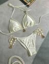 Bikini de Navidad de tela texturizada y colorida para mujer con parte superior con aros y Bottom con lazos en los laterales, para estilo de playa en verano