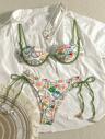 Bikinx Conjunto de bikini con sostén con aros, estampado festivo y flecos con cordones para mujer