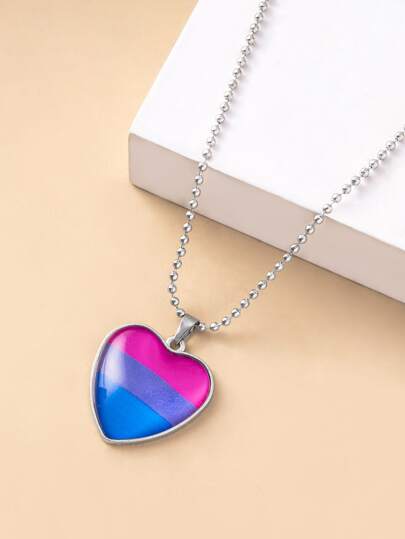 Collar colgante de corazón con patrón de bandera orgullo bisexual - Plateado - Añade 2