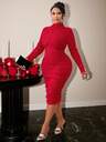 BIUBIU Vestido de punto de unicolor para mujer de talla grande con pliegues en los hombros, adecuado para el otoño, ropa de mujer para otoño e invierno, ropa para viajes al aeropuerto, vestido romántico, vestido de invitada de boda, vestido ajustado, vestido de encaje, vestido de noche, vestido formal, vestido de cumpleaños
