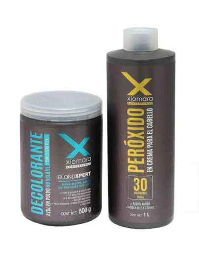 Peróxido BlondXpert 30 volúmenes + Decolorante Azul Descripción Decolorante en polvo no volátil con efecto Plex. Consigue una perfecta aclaración sobre bases castañas claras y rubias. Modo de Uso Mezcla la cantidad necesaria de Peróxido BlondXpert ® con Tinte o Decolorante Azul BlondXpert ® y sigue las instrucciones del producto con que se mezcle. Usa recipientes y utensilios no metálicos. Beneficios Poder de aclaración de hasta 9 etapas Con efecto Plex para protección de la fibra capilar durante el proceso Neutraliza tonos cálidos Mezcla homogénea y cremosa sin escurrimientos Aroma fresco Color: Albaricoque
