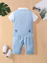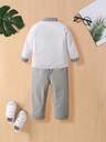 2 piezas Conjunto de ropa de caballero para bebé niño, camisa de manga larga con moño y peto, elegante y distinguido para fiesta de cumpleaños, evento formal, boda, celebración