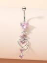 1 pieza Aro de ombligo de acero inoxidable, Joya de perforación de ombligo con cierre de corazón de CZ rosa lindo e hipoalergénico para mujeres