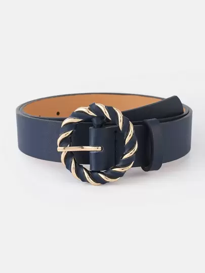 1 pieza Cinturón de hebilla retorcida de unicolor estilo bohemio para mujer, adecuado para uso diario en verano, escuela en otoño, otoño, Halloween - Azul Marino - Añade 3