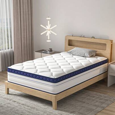 Colchón híbrido individual 100x190 cm, 25 cm de grosor, espuma viscoelástica con resortes ensacados, diseño ergonómico para espalda, soporte firme y suave, colchón en caja fácil de instalar - Azul y blanco - Añade 1
