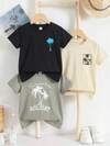 Conjunto de 3 piezas de camisetas de punto con cuello redondo y estampado de letras casuales para niños preadolescentes, adecuado para la escuela y uso al aire libre, primavera/verano