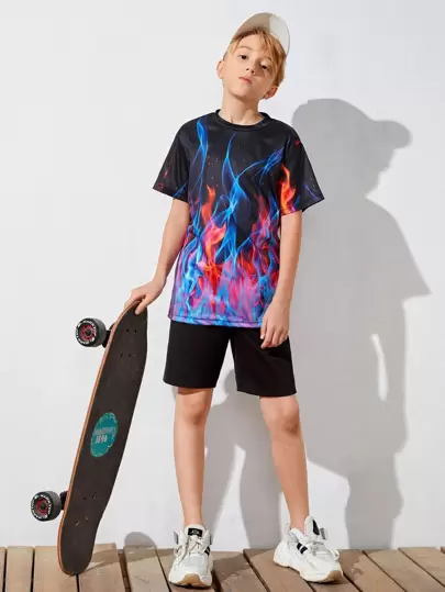 Camiseta con estampado de fuego - Multicolor - Añade 1