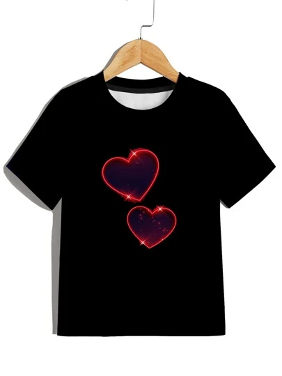 Niños Camiseta con estampado de corazón - Negro - Añade 2