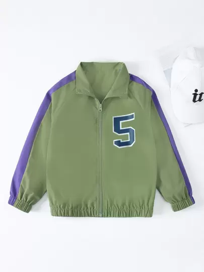 Niños Cazadora con estampado de número con costura lateral en contraste de manga raglán - Verde militar - Añade 5