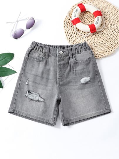 Chicos Shorts en mezclilla desgarro crudo - Gris - Añade 5