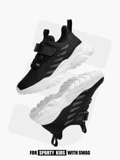 JNSQ Zapatos Para Correr Ligeros, Transpirables Y Suaves De Primavera Y Otoño Para Niños Con Diseño De Tejido Volador - Negro - Añade 1