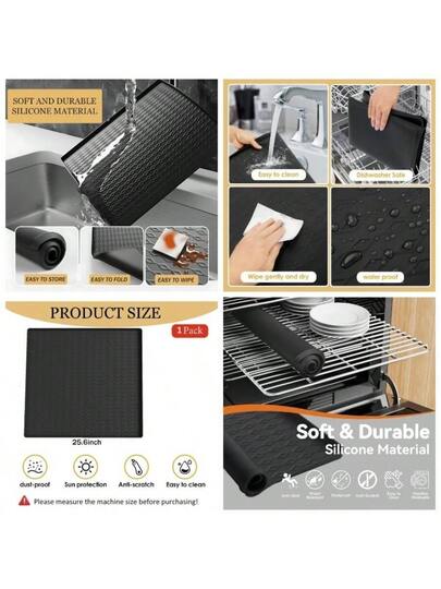 - 2 fundas para lavadora y secadora para la parte superior, 26.5x 23.5 pulgadas, almohadillas para orejas de silicona para lavadora y secadora, antideslizante e impermeable - Negro - + 25,6 x 23,6"-1 pieza - Añade 1