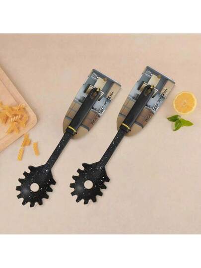 CASAMAX WL Rastrillo de plástico para espagueti y pasta 30x7 cm, cuchara utensilio de cocina antiadherente resistente, ideal para servir y cocinar pasta, accesorio práctico y duradero - Negro - Añade 2
