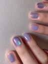 24 piezas Conjunto de uñas postizas cuadradas cortas de color lila traslúcido con efecto de ojo de gato, adecuadas para mujeres, estudiantes, trabajadores de oficina, para uso diario, citas, suministros de uñas