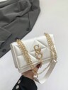 Bolso de hombro cuadrado acolchado de unicolor clásico para mujer, bolso de maquillaje de PU retro con correa ajustable, cartera cuadrada, adecuado para uso al aire libre