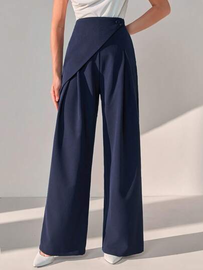 CLARA VERO Pantalones de pierna ancha de color sólido con detalles envolventes - Azul Marino - Añade 7