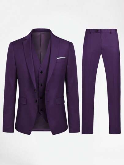 CLOUDSTYLE Hombres Set traje Blazer con botón & Chaleco con pantalones - Morado - Añade 1