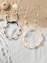 2 piezas Conjunto de collar y pulsera de decoración con conchas marinas estilo bohemio para mujeres, accesorios hechos a mano para vacaciones, regalos para mejores amigas