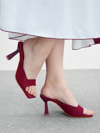 CUCCOO BIZCHIC Sandalias de mujer de tacón de aguja de punta cuadrada con rhinestones, transpirables, para el verano - Burdeos - Añade 5