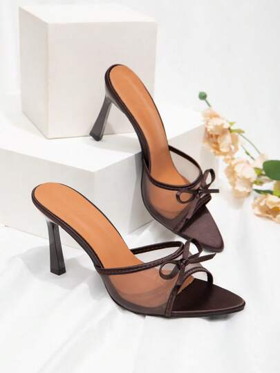 CUCCOO CHICEST Nuevas sandalias de tacón alto delgadas y versátiles con tiras de moño de rhinestone de moda - Marrón - Añade 1