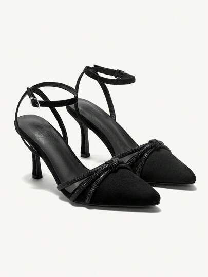 CUCCOO CHICEST Sandalias de tacón alto negro con strass para mujer - Negro - Añade 2
