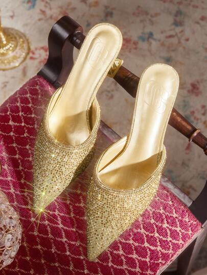 CUCCOO TILAWA Zapatos de tacón alto con decoración de strass para mujer, ideales para fiestas, Año Nuevo y San Valentín - Dorado - Añade 1