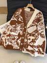 Cárdigan casual con lazo y botones para mujer talla grande, diseño de bloques de color y parches, con bolsillos, para otoño/invierno