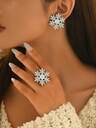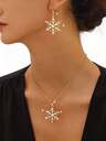 Conjunto de 3 piezas de joyería con collar y aretes de flor de metal para mujeres, de moda para fiestas, banquetes, bodas y versátil para el Día de San Valentín