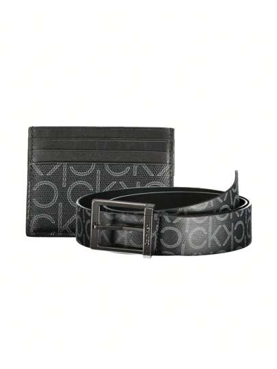 Cinturón reversible para hombres con porta tarjetas con monograma - Negro - Añade 1