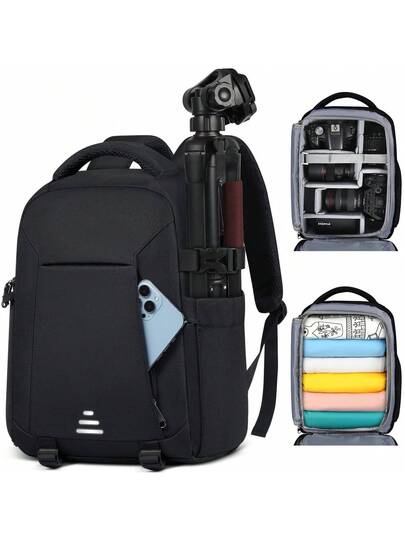 Mochila para Camara Fotografica, Bolsa Mochila Profesional para Camara, Mochila Impermeable para Portátil de 15.6 pulgadas con Divisores Desmontables y Cubierta para la lluvia - Negro - Añade 1