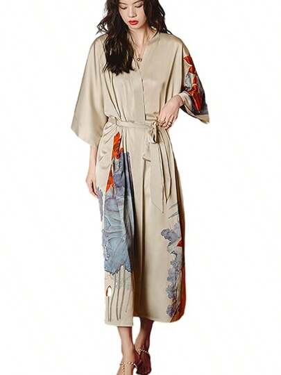 Daiwor Kout - de seda larga de satén japonesa para mujer, de baño suave y sedosa, ligera, de baño de verano - Corazón beige - Añade 13