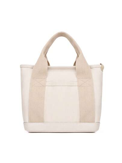 Bolso cubo de lona doble asa para diariamente - Beis - Añade 1