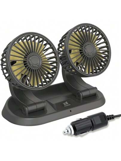 1 Pieza Ventilador De Enfriamiento Para Auto De Doble Cabeza De 360° Ajustable, Con Alta Potencia De Viento Y Bajo Ruido Opcional De 12v/24v - Negro - Añade 3