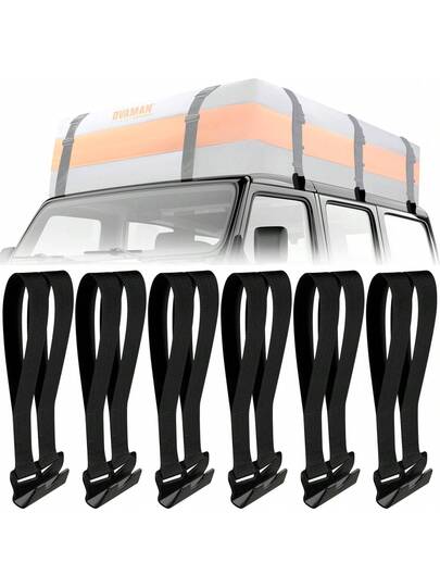 6 correas de gancho de amarre en la azotea \u2013 Asegure cualquier bolsa de techo de coche, portaequipajes de techo o portaequipajes superiores del coche, no requiere portaequipajes, compatible con la - negro - Añade 1