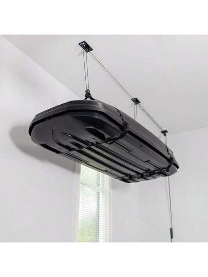 Caja de almacenaje, sistema de polea para garaje y polea de techo, soporta hasta 68 kg, vibraciones bohemias - Negro - Añade 1