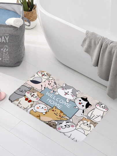 Alfombra de piso con diseño de gato dibujos animados, linda alfombra antideslizante para baño, para decoración del hogar y habitación - Multicolor - Añade 5